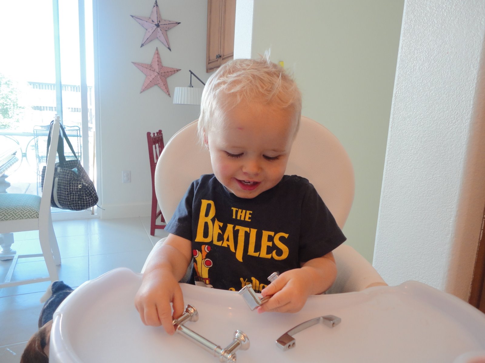 Why not a few knobs with your watermelon! We are in the middle of remodeling our kitchen right now and Hudson wants to have his input on everything! Thanks for the extra help Hudson ;)